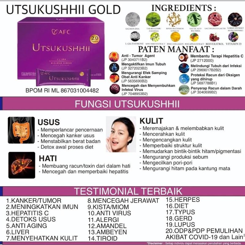 8 PATEN MANFAAT UTSUKUSHHII GOLD :